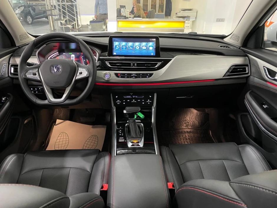 - Отделка дверей и сидений искусственной кожей с контрастной строчкой